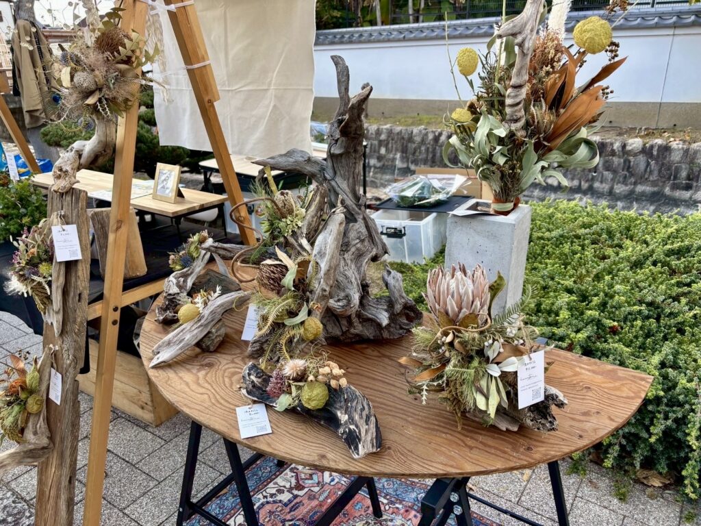 また、秋冬のギフトにぴったりな、華やかなドライフラワーのアレンジメントや、布小物、アクセサリーなど、暮らしを彩る商品も多数。
